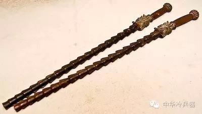 Taking a further look at the question, though: what is "a weapon of war"?. For one thing, a “cudgel” was not. When a nation sent an army out, it did so full of sharp and pointy bits. The police, on the other hand, use blunt instruments. One can see this in similarities of certain weapons, like the straight sword (jian) and the “whip.” (Below, whip on the left, ancient jian on the right.) One is simply the blunt version of the other, no? Likewise, the security...think Pinkertons or Blackwater...aspects. The army did not use three-section staves or butterfly swords. Those were much more popular with street-level operations.