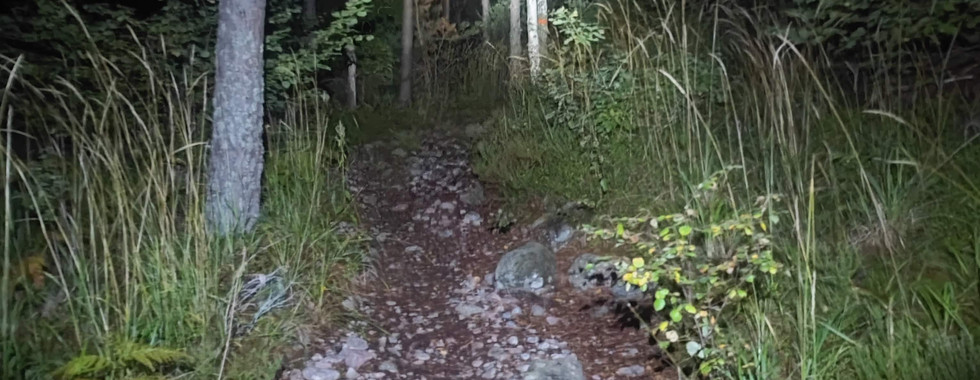 So what about the fun - right? It was about this point that I realized how beautiful things were. Perhaps it was the math that settled my mind. I mean, I’d slowed from around 4.5 ~ 5 miles an hour to only 2. At that pace, which wasn’t likely to improve over this section, I realized I couldn’t make the 5:00AM cut off. For a bit this played havoc on my thinking. Lots of the “why am I even out here” questions. Chased around because “well, I’m this kind of person now” answers. In loops and loops. It quieted coming down off the fornborg, though. And on the next stony bluff? I saw the clouds had blown easterly, so the stars were out. The moon was low, and behind those clouds, so they were bright and clear! As I went along, the moon broke through and it was stately among the pine crests. Anyway, I had no where else to be, and had to get to wherever was next. Sure, there were thoughts of “I have a survival sleeping bag, I should just call it off and sleep here and finish…whenever.” But, that was pretty silly, even to myself, on the face of it.